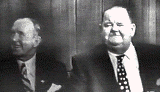For those unfamiliar with this sentimental hooey, "This Is Your Life's" premise was that each week, some unsuspecting celebrity would be dragged onto live TV and have his or her life story condescendingly recalled to him by host Ralph Edwards, who would also parade the celebrity's friends or associates on stage to briefly regale the audience with all-too-well rehearsed anecdotes. (Buster Keaton was another comedy legend subjected to this process at one point.) The "TIYL" format is shown in full, naked flower here, as director Leo McCarey stammeringly tried to tell how L&H were made a team, and one-time co-star Vivian Blaine told a story that had nothing to do with her co-starring role in L&H's Jitterbugs.