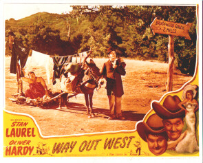 But Way Out West had something beyond its modest pretensions at Western-spoofing. Its jaunty score, superbly done by L&H veteran Marvin Hatley, was nominated for an Oscar. And in the wake of L&H's success, Western spoofs suddenly became the rage, as W.C. Fields, Mae West, and The Marx Brothers followed suit.