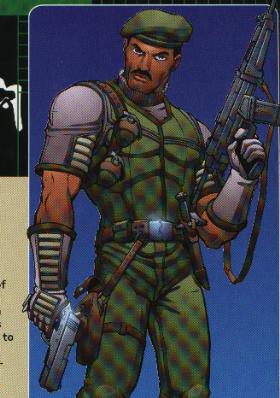 Talents: Aerial Combat, Demolitions, First Aid, Guns, Multi-Lingual (Arabic, French, English, Spanish, Swahili), Martial Arts B, Military, Pilot, Weapon Skill (Knives), Survival