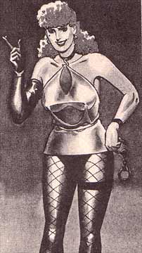 More celebrity than vigilante, Silk Spectre provided a cover for Hooded Justice's homosexuality by being his glamorous girlfriend. She eventually married Laurence Schexnayder, her agent and impressario behind the Minutemen. The marriage eventually failed. She had a brief affair with the Comedian (Edward Blake), bearing their child, Laurel ("Laurie") Jane Juspeczyk, whom she more or less forced into a crimefighting career as the second Silk Spectre. Silk Spectre had various seedy moments of celebrity, including a sexploitation movie about her called Silk Swingers of Suburbia during the drive-in movie era. She eventually retired to Nepenthe Gardens Rest Resort where she nurses her secrets and memories, in particular, her ill-fated love for the Comedian. |