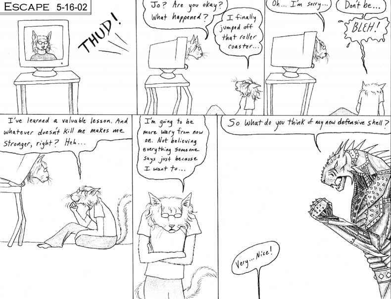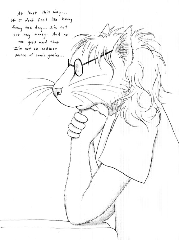 By the way - that cat in the computer up there? That's my good friend Tari. Even though she's never been in one of my comics before, she's always been around (online). When Mom and I drive to Arizona, we'll be stopping at her place to rest up. That will be nice because I haven't seen her in a long long time. She's a great friend and deserves much commendation for that.