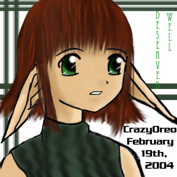 2-19-04 I finished this drawing and colored it all last night and did no homework like I should have ;___; Oops, but oh well. I am going to put the original Sketch to this in the Sketches section, but I haven't had time to get it up lately, so Much homework to do. I'll try to get some drawings done more often, but I haven't been in drawing moods when I've had time >< Gomen! Please bear with! 12-24-03 One more Original art before Christmas! I should start updating more often, but I haven't been in the greatest drawing mood. . . My next picture'll probably be something to do with Newyears. ^^ But who knows when that'll be done =P I am in the process of fixing my scanner, that's why this picture is so crappy. *kicks Digital Camera* 12-5-03 Yay! I added something! It'd help if I had a scanner. . . but anyway, random Faerie drawing I did last month. . . scanned it in at school and colored in Computer graphics when I shouldn't have =P Anyway, yeah. Hopefully I'll have more updates more often, but I can't seem to draw too much lately. Bleh 11-4-03 Yes, I have changed this page into an art page, as I need somewhere to store all of my art. . . I figure that most won't mind, nor will this site be visited often. . . But I'll gladly take comments if you would like to E-mail Me. ~ Oreo |