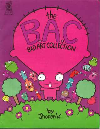 | The Bad Art Collection Why do I bother to make a summary for this, really? It's so.. utterly pointless. There's really not much to summarize. Still, it's something I can do so I stop feeling guilty. Goons from the Drool in the Bathroom... An inspiring tale of perseverence and survival against the odds. Yesss... A bizarre and malformed jellybean type thingy must try his courage and leap a trench to reach a wrapped SOMETHING. Alas, he fails, falling into the depths of the ditch. Will he ever reach his goal? Doodi Doodi Dingi Doing People takes place on a plane. (Hm. Is this a reference to 9-11?! No, idiots, this is BEFORE that. Christ, everyone's always going on and on about 9-11 this and 9-11 that. u_u) A poor little orphan girl desires nice crunchy peanuts. This insane desire results in a fight to the death between the stewardess and the little girl. This one has quite the plot twist!!! Oooooh. Victims of Defective Fajitas is a tale of father and son. They go camping (can you feel the luv?) and the son gets 'accidentally' left behind (FEEL IT!) to fend for himself. (LOVE LOVE LOVE!!!!!) By this time we are growing tired of this mindless chatter... so the book temporarily redeems itself with Wicked Juicy Ribule Fluid, which is mindless blather. (see!? not chatter, BLATHER. B-L-A-T-H-E-R.) A poor gender-neutral thing without organs that protrude from its chest or crotch is running along merrily when he sees a kiwi! He pets the kiwi, thus becoming subject to... THE EVIL KIWI CURSE! He must pet the kiwi... FOREVER. The torment!! HOW WILL HE SURVIVE?!!? Really, how? I forgot. Umbilical Death Noogies. I am listening to a song called 'ambilical cord' right now. Neat, huh? So, this comic is supposed to 'warm your heart.' Well, I suppose if you set it on fire it would. Anyway, it is a dramatic story of an ACTUALLY loving father, his dear child and a mortar shell. Oh, and God. Liquid Squeeges from Inner Hades suddenly reminds me of The Ring. DAMN YOU!!! Ahhhhhhhhh... it involves a well. Not scary though, thank god. Poor baby has fallen down the well. They go through much to save her and eventually - STATIC jlkgnaljgnlafdjgngkajngla - isn't that a great ending? Licking the Rancid Corpse Thingies... oh my god I completely forgot what this one is about. o_o... Oh, yes, a lonely and frightening looking, uhm, thing. He's also suicidal. How pleasant. Wow, is there some pain in this one. whoo-eee. o_O HE LEFT HIS OVEN ON!!!! Wet and Wobbly Prostate Potatoes is about friendship. Poor little snowman cat thing has been shot, but soon a friend approacheth. Aww, how sweet. So, ah... this is a good song. Anyway, it also includes a sub plot! How amazing. The sub plot is awesome, by the way. Is your brain falling asleep? Goood... time for us to move in..... hehehe. Actually, no, I DON'T want your brainmeats, but thanks for offering. Imploding Weesil Spleens from the Speckled Vomit is actually quite funny. The weenies are coming.... I am frightened. Also, we see the true origin of 'Do This Smell', something I'm sure has bothered you endlessly. Was that really supposed to be a summary? Geez. Bean infested Fecal Sausage involves the almighty puke. How fun. So, we have our mickey mouse thingy in some sort of voot thing. So, yeah, my mom is bitching at me to wear this UGLY ASS VEST... u_u oh. Yeah. I'm summarizing, not blogging. So then the flying thingy goes nuts and stuff and we watch the carnage. Fondling the Intestinal Meat Niblets is actually somewhat sensical! And, might I add, hillarious. A little moose is all happy and singing and stuff when a dooky vampire bunny attacks! So, after sucking the shit (literally) out of our moosey friend, he goes off. Our friend begins to undergo a change.... oh god I love his 'change.' After his change to a 'lusty minion of darkness', he goes off to find a victim... and.. well, sucks the shit outta him. (Yeah, it is really fucking nasty... and it gets worse, too. Reminds me of burritos.) He soon discovers that he does not enjoy this new life, and seeks to end it... xDDDDDDDDDDDDDDDD god I love this. Throbbing Evil Wedgies of Nocturnal Squeezy Cheeze has more flying things!! Wheeee! This time the airborn object in question is a PIG. Neat. He is worried about giant concrete peanuts in his path, because suddenly he cannot control his flight. Oh dear... Wrenching the Magical Meat Moosys... my goodness, that marshmallow bear cat thing reminds me of Syd. How frightening. Well, anyone who knows Syd should know where this is going when a little boy-thing approaches... The boy perseveres, yet... Well. YOU'LL NEVER KNOW, WILL YOU?! When The Peanuts Wept is another one that I completely forgot. o.o .:: shock ::. so it's about aliens. And um, the aliens crash, and only one survives. He repents, and decides not to destroy the planet. Will he honor his new life? My goodnes, I just don't know. :o
