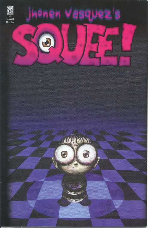 | SQUEE! is much more light-hearted than JtHM, but that still doesn't mean it should be made into a cartoon an aired on Nick Jr, okay? Obviously, it stars Squee from JtHM. It's basically an assault on little Squee, as he is bombarded with frightening things like dust mites, aliens, and the antichrist. It's very funny all around, in that unique Jhonen way.