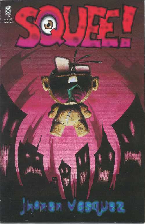 | Issue #2 This one has a lot of um.... well let's just say it's not a kid friendly issue. (Like any of them are. xD) I really like this one, though it may overstep the boundaries into offensive for a few of you pussies. 6:30 PM A Drive Home from Somewhere. Squee's gotta take a leak, but his parents find this to be an annoyance. Finally, they relent and pull into a Dingy's. Squee shoots in and dashes to the shitpit. He begins to urinate (don't I sound scientific!) but is freaked out by the sounds coming from the stall next door. sign the guestbook. Oh, the noises. Things start to get rather disgusting in a few panels... This bit here reminds me of Dreamcatcher a LOT. Ickiyuckipooh. Wobbly Headed Bob and a kitty. Nighttime on the roof. Squee is visited by his future self! How neat :3! He's supposed to warn himself of something... unfortunately, something glitches this up. And if you don't buy the comic (or maybe borrow it or something) you will NEVER EVER know. NEVER. And again we must sit through... True Tales of Human Drama!!! I really like this one. XD A man fears flying, but the flight attendant assures him there is nothing to fear, even sharing her own touching story of overcoming fears. Sometime in Dreamland... I had this dream once. :o Jhonen leeched my BRAIN, DIDN'T HE?!! oh, that bastard. That wonderful, talented bastard. So, I was summarizing things, wasn't I? Squee is flyin'!! he FLYIN'!!!! Lookit dat. But then something goes wrong- he loses control- and....!!!!! SHMEE SAVES THE DAY! Wh00t! We now learn Shmee's true nature. Kinda creepy. Meanwhile: in some testoserone abundant dimension... This one is just... awesome. I love it. The victim: Marvel Comics. Here we have Schlong and Lady Sexhole, fighting the bad guys. You really have to see it to get it... xDDDDDDD it's just so AWESOME. And ah... well. read. .:: continues laughing for about 10 minutes ::. Ho- HAHAH- hokay... LOL.. Awright. I fink I have recovered. Time for a Visit from Granpa! Granpa 'Hatey' is quite possibly the reason I hate old people so much. (Actually, it has to do with losses at a tender age, but that sob story is not to be told here.) Jeezus H. Bloody Christ, this guy is SCARY. o_O... Funny, tho. Boy of Happy Noodles. >:9 Noodle Boy gets some exposure. Dreamtime!!! Ever seen Monsters Inc? Like that, only funny.