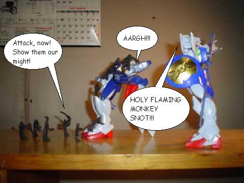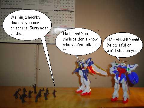 The ninjas strike, and can even the mighty GUNDAMS stop them?
