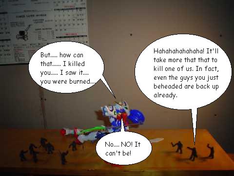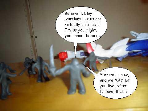 Didn't you know? Clay can reform, so cutting a head off is non-lethal. As for why the flams didn't cook those others.... um... would you believe ninja magic?