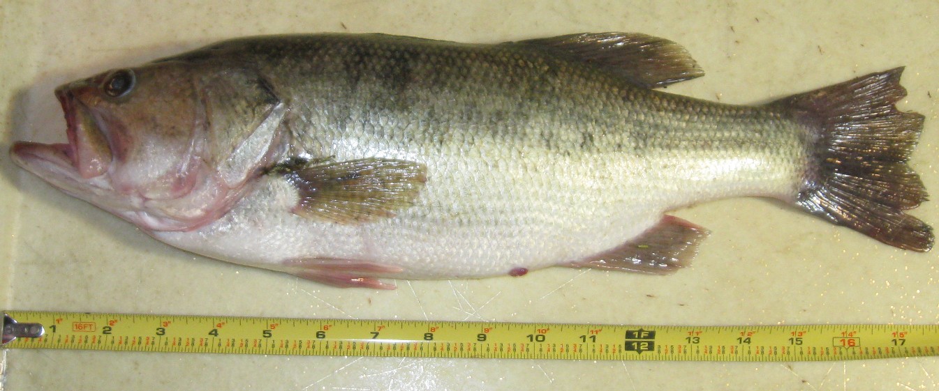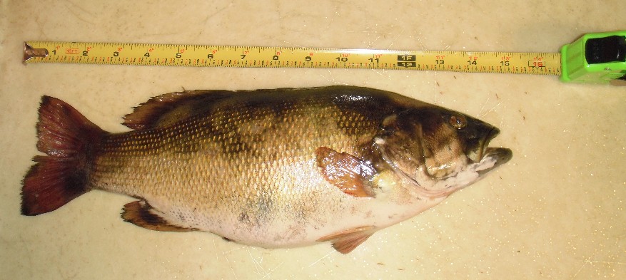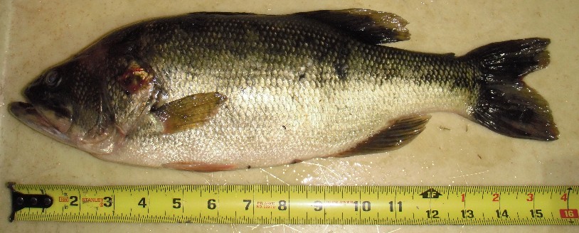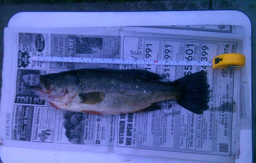 16" Largemouth Bass weighing 2 & 1/4 LBS caught by me in the Willamette River.
