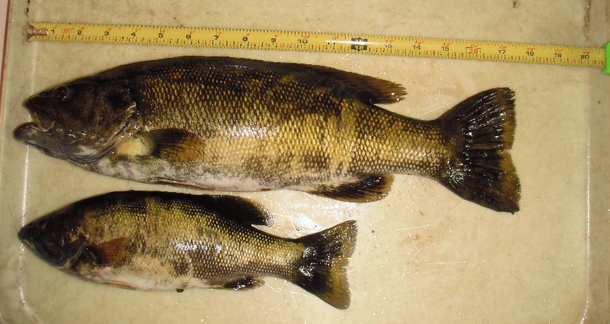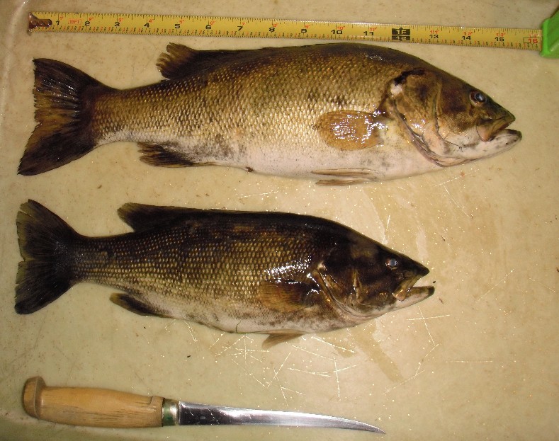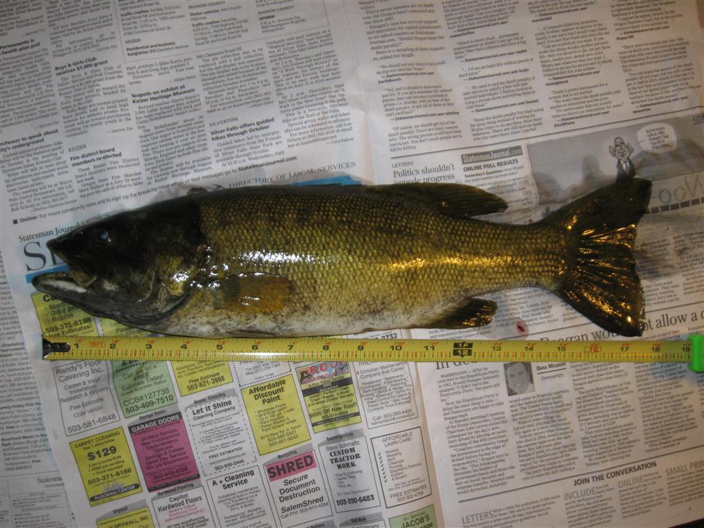 2 Smallmouth Bass caught by me in the Willamette River. The largest measures 18" and weighs 2 & 3/4 LBS.