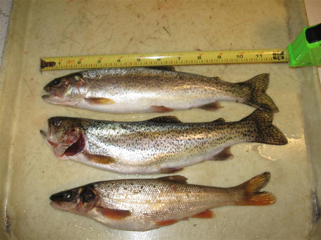 2 native Rainbow Trout and a Squawfish (Northern Pikeminnow) caught in a local creek.