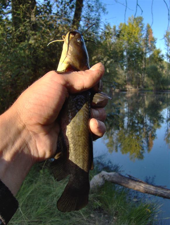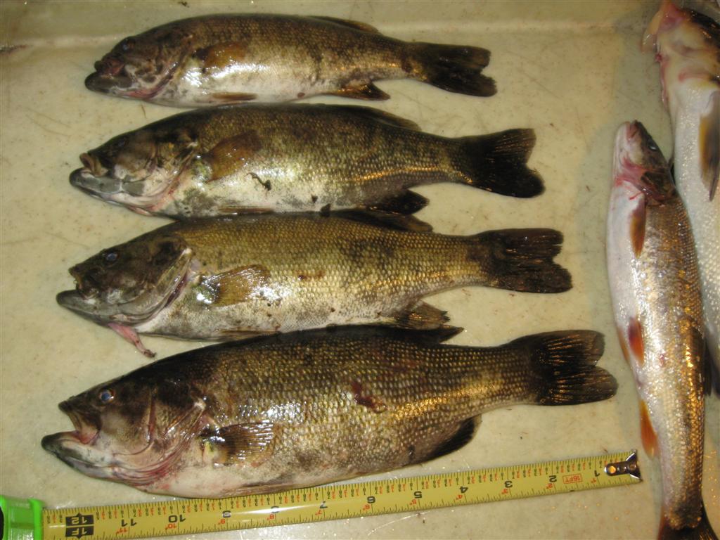 1 12" Smallmouth Bass and 3 Squawfish (Northern Pikeminnow) caught in the Willamette River. (The Squawfish are for crayfish bait.)