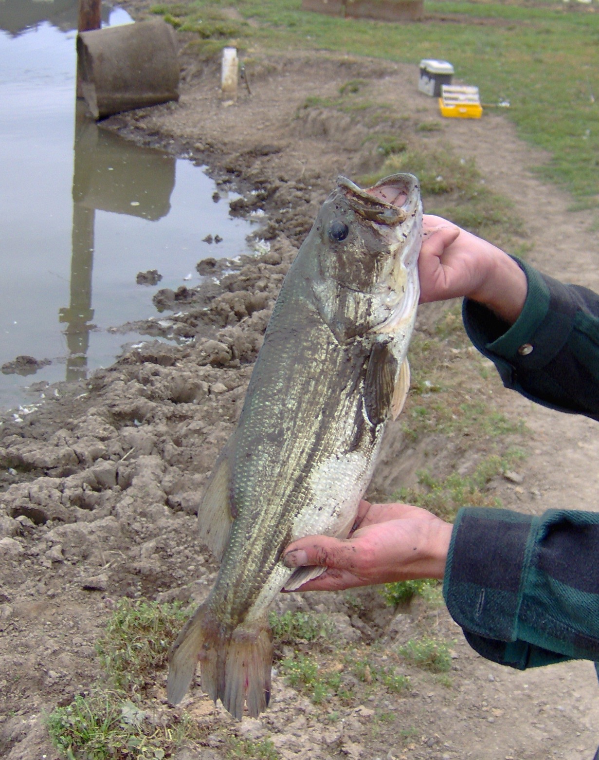 A Largemouth Bass with an unusually light and silvery color caught at a lake near Independence (released).