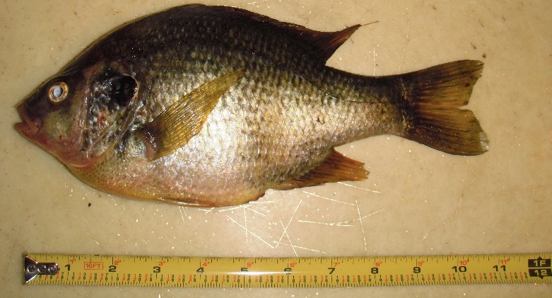 11" Bluegill weighing 1.1 LBS caught by me at St. Louis Ponds. My largest Bluegill so far.