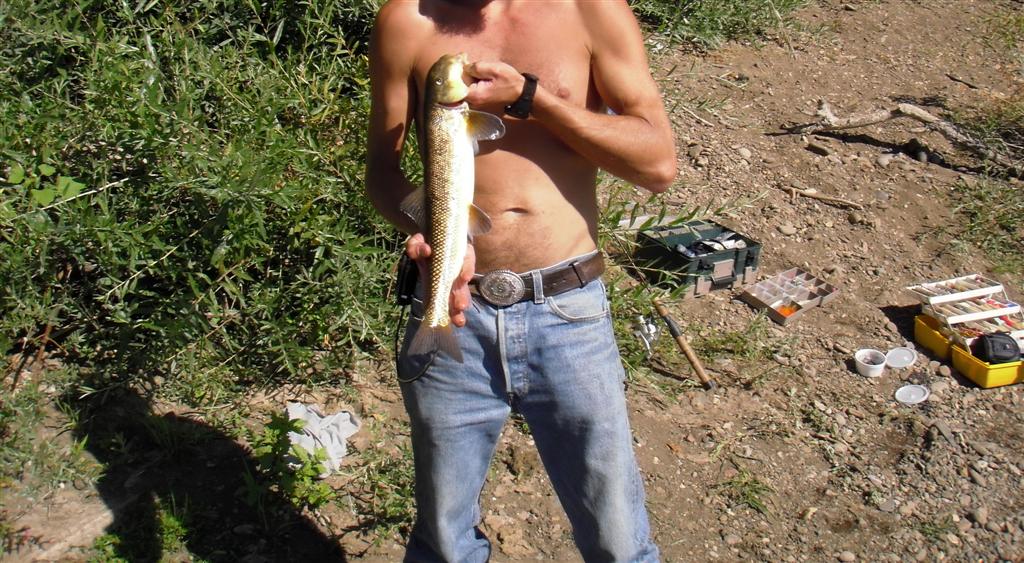 3 Smallmouth Bass and 1 large Squawfish (Northern Pikeminnow) caught in the Willamette River. (The Squawfish is for crayfish bait.) The big Smallmouth is my largest bass so far, measuring 18 1/2" in length and weighing in at 3 1/2 LBS.