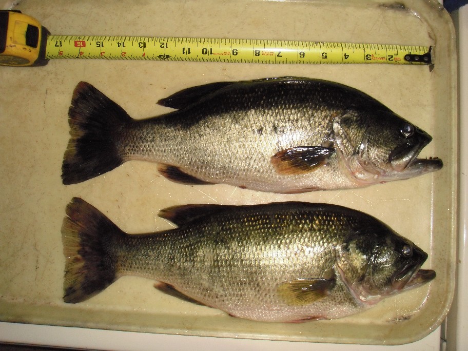 2 Largemouth Bass, both about 16" in length and weighing just over 2 3/4 LBS each, caught by me in the Willamette River.