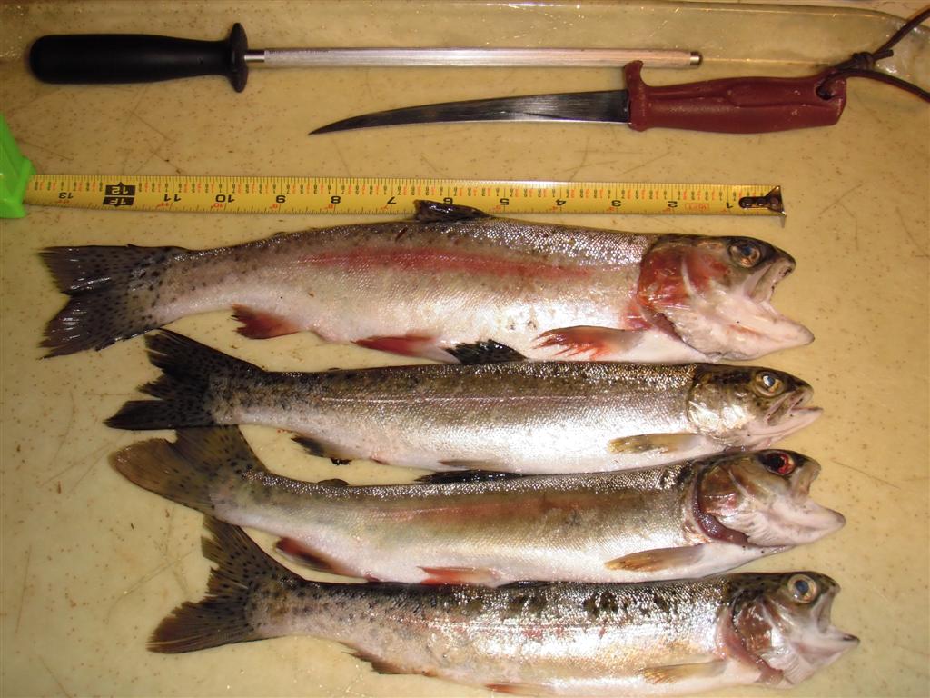 4 Rainbow Trout caught in Battle Lake by me and my friend. The largest is just over 13".