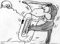 Here you will find the complete collection of Opus N' Andy cartoons, drawn by Jonathan Carreira, former clarinetist, baritone-ist, trumpeter, major annoyance of the Huskie Band. For those new to this experience, Opus N' Andy was found occasionaly on the Huskie Marching Band board and was a loopy parody of whatever loopy stuff was happening in the band at that given point in time. Most of the jokes in these cartoons are inside jokes or refer to specific instances at specific events, so if you are unfamilliar with the name Frank V. Bibb, you most likely won't get a lot of this. The rest of you will wet yourselves.If my wife's entertainment law class was correct, all the images in these cartoons represent parody and therefore do not violate any copyright or personal right not to have your badly drawn image posted on the internet making out with a penguin. However, if you appear in one of these cartoons and do not wish to be as fabulosly famous as thes pages will no doubt make you, please e-mail me and I will remove the offending cartoon. One exception to all this is the use of the characters of Opus and Marge Simpson who are registered copyrights of Berkely Breathed and Matt Groening, respectively. In the explanations that go along with the cartoons you will find the reasons why the characters are regulars in this strip. If Mr. Breathed or Mr. Groening happen upon these pages and are cross with me, please keep this in mind. These cartoons were drawn for the entertainment of a small group of friends and were never for sale and never made me any money. Also, my sister went to college with Berke Breathed's wife so were almost like cousins, right?