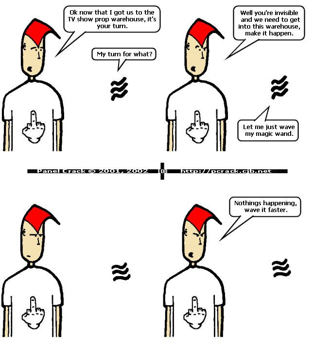 The White Stripes deserve a motherfucking award in the category of ‘Best use of harmonica in any song ever’ for their song ‘Hello Operator.’ Use WinMX and download that shite right now, or buy it if you live near a really good music store, but not if you are more than twenty minutes away, because that’s just too damn long to wait to envelope the awesomeness. Whoa, msword knows that awesomeness is a word, but it thinks itself should be referred to as MS word. By the way, if you aren’t reading Bobby Burgess’s Journal, then you are obviously not be entertained enough when you are online. A question to end with: How often have I used this space for explaining the joke in the comic?