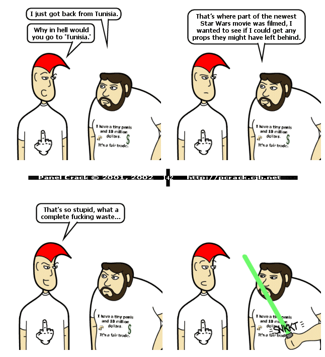 Note to readers: If you bookmark this site, it is best to bookmark pcrack.cjb.net, just in case this host goes down that is a redirect url and it will take you to wherever I put the newest comic. © 2001, 2002 I scream, you scream, we all scream for crack.