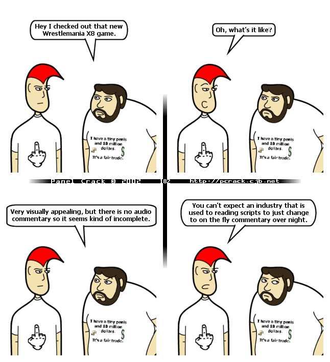 Note to readers: If you bookmark this site, it is best to bookmark pcrack.cjb.net, just in case this host goes down that is a redirect url and it will take you to wherever I put the newest comic. © 2001, 2002 I scream, you scream, we all scream for crack.