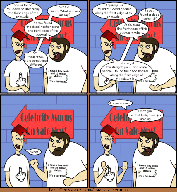 Note to readers: If you bookmark this site, it is best to bookmark pcrack.cjb.net, just in case this host goes down that is a redirect url and it will take you to wherever I put the newest comic. © 2001, 2002 I scream, you scream, we all scream for crack.