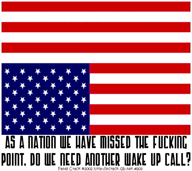 Bulletin The first version of this comic was more offensive. I'm already sick of the way they are covering this event and it's only 9:30am. In case you haven't noticed, the schedule is non-existent right now. There is a lot going on right now in real life. I'm getting married in less than a month and you wouldn't believe what that takes. Madden is also grasping for time, so you know I gotta get my game on too. I have a few comic ideas and I'll try to get them up here asap. A normal schedule will resume in the middle of October.