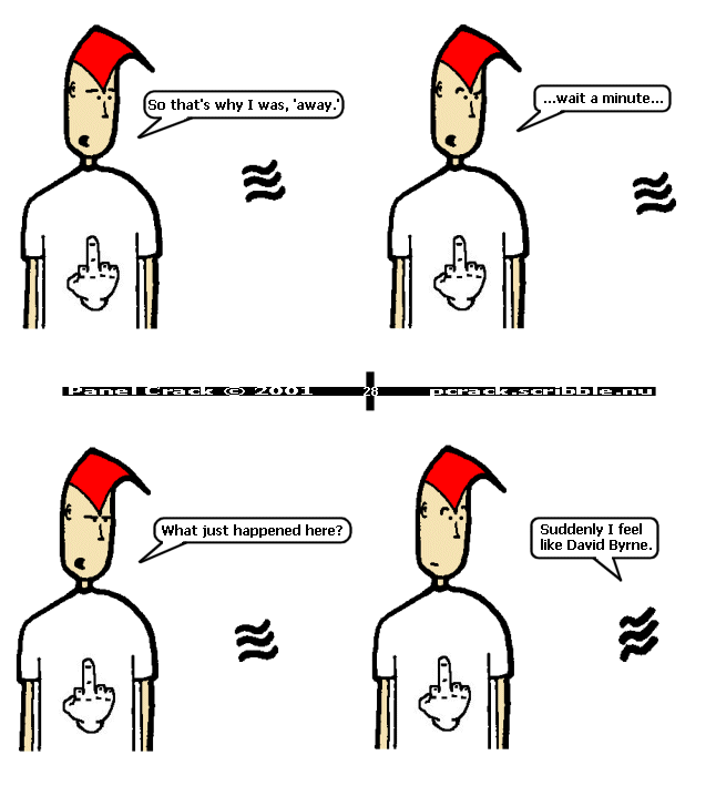 If you’re observant then you know this place has had a few changes over the past few weeks. If you’re not, then don’t fear, you can read the bulletin and I’ll tell you. Last week of course was the layout change, or was that the week before, no, I think it was last week. This week brings the art change. I have been anticipating this change for quite a while now. My only problem implementing it was finding time on a scanner, which I did, so we’re good to go now. The other thing is that now I have a comments section, you can leave a note and tell me what you think of my comic. Eventually there will be some kind of contest having something to do with that, but I have to figure out what it could be first. If you have any ideas, let that be your first comment.