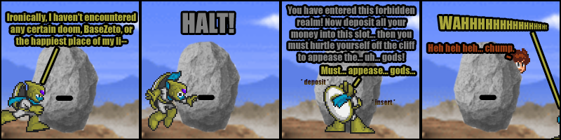 You know he'll survive that one. By the way, that character behind the rock is my author character. He'll...or should I say I...will be popping in and out of the comic to screw around with them.