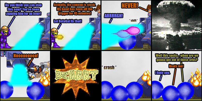 I suppose it's unlikely that the cannon would flip perfectly and nail me, but hey, its a comic.