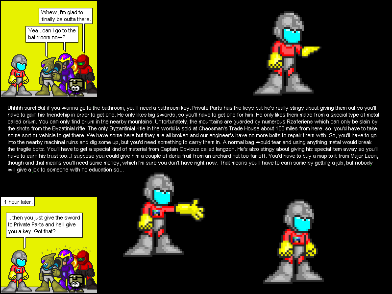 (June 10, 2003) This is a tribute to those really annoying side quests in RPGs that seem to take 74 hours to complete.