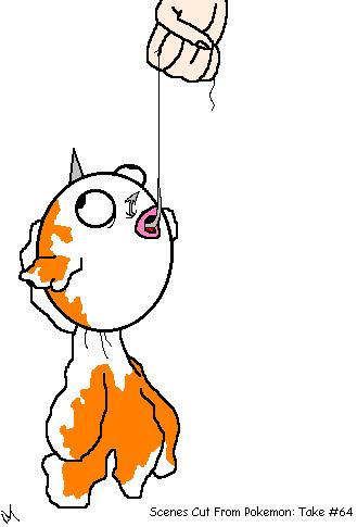 A Goldeen on a fishhook