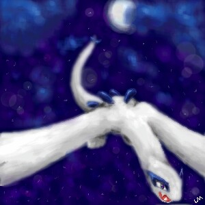 Lugia flying through the sky at night
