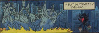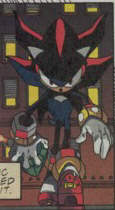 This is where you can find pics of Shadow when he first came to the comics in issue 98 of Sonic the Hedgehog. Unfourtunatly from what I have been told, the story does not follow exactly to that of the SA2 game and the fact its only one issue. I hope to get my own copy soon and do my own review on it. Also if anyone has the comic and would like to send scans of Shadow and Rouge, please send them to Sonicomix@hotmail.com .