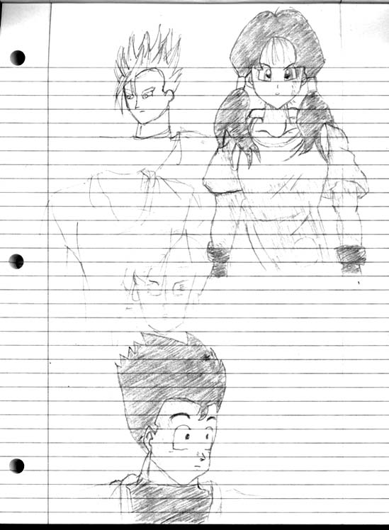 Gohan and Videl - This is the teaser image that I drew for my new Gh/Vi story, 'Parallel and Perpendicular'. I must say, I am rather pleased with the results, despite me not being able to draw the characters well. I requested the help of fellow fanfiction.net author, Psycho-Ann, for coloring purposes. Her use of the colors makes this pretty damn good in my eyes. This was drawn on a 9 x 12 sketch pad with a HB pencil being my primary tool. I also used a 2H for touch ups. Ann used OpenCanvas for coloring.