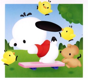 Bueno...empecemos por el principio: ¿quién es Pochacco? Pocha significa "chubby" o sea chiquito curiosito(o algo por el estilo. Pochacco Nació el 29 de febrero de 1989 en Uguisu Yokocho en Japón.. Es un cachorrito precioso que tiene varios hobbies, por ejemplo le gusta el basketball, karate, patinar, baseball, dormir, jugar con sus amigos, hacer posiciones adorables, es fotogénico, entre otros. En sus tiempos de soledad le gusta oir música. Le gusta caminar con sus amigos, en especial con Choppi el ratón; quien siempre están para ayudarse mutuamente....una verdadera amistad. Adorablemente, Pochacco le gusta hacer nuevos amigos y las aventuras fuertes. Él es amigo de quien se encuentre a su paso. Su bebida favorita es la leche japonesa, él cree que es la más nutritiva; también gusta de las nieves y helados, en especial la llamada "banana split". Todo esto se come hasta que su pancita se infle. Actualmente Pochacco tiene muchas páginas, muy buenas por cierto, la llamada "oficial" está en Sanrio