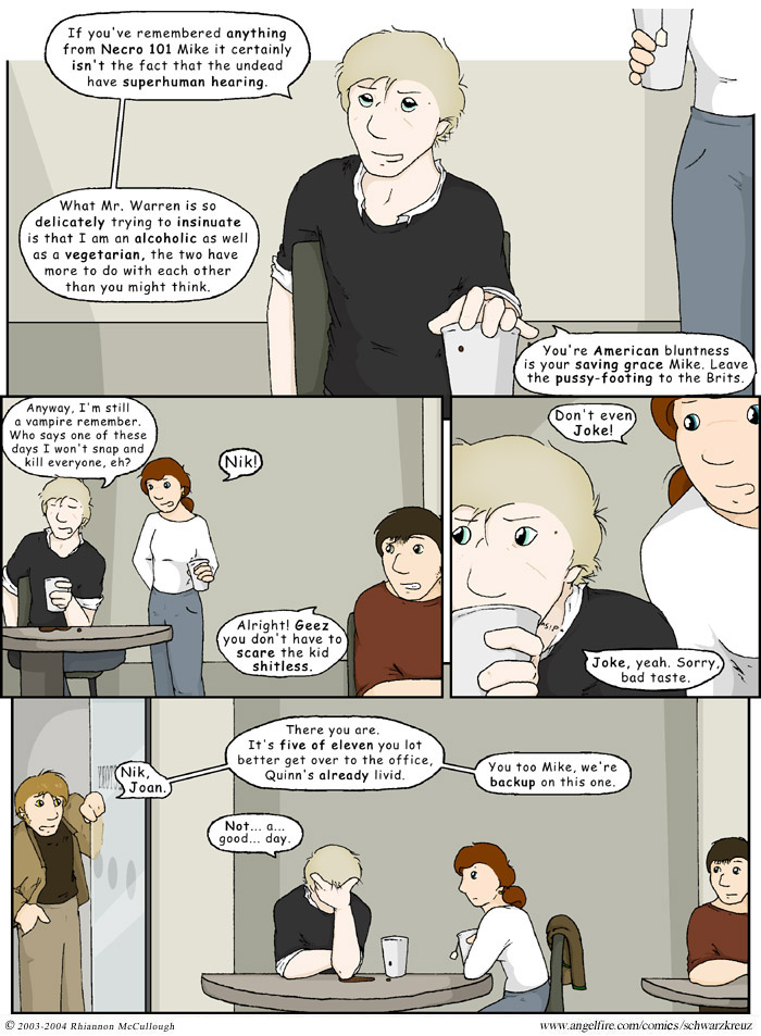 < previous next> 5 -Back- Disclaimer & Special Thanks Schwarz Kreuz is the original work and property of Rhiannon McCullough ©2003/2004