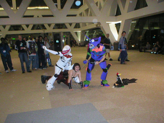 My camera still isn't done yet, so here are some images. The real pages are in progress, gomen! ^^ I'll have other pics up from my camera once it's done! By the way, I made the two Eva units in the middle, and I'm the white one.