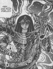 Pharaoh appartenente alla Tenju Sei (Stella della Bestia Celeste) custodisce il terzo cerchio insieme al mostruoso Cerberos, che gli obbedisce fedelmente. Oltre a proteggere il terzo cerchio, Pharaoh era solito allietare Handes e Pandora con la sua musica, finché il suo posto non venne preso da Orfeo, con il quale è quindi in rivalità. Ha la fiducia di Pandora, che tra l'altro gli affidò il proprio specchietto per ingannare Orfeo ed impedirgli di riportare Euridice sulla terra. Come indica il nome è di chiare origini egizie, anche se questo ha poco a che fare con le sue tecniche di battaglia. Per combattere usa infatti la sua arpa, con la quale suona una musica triste e pesante, che lancia una maledizione sul nemico, il cui cuore esce dal petto e si posiziona su una bilancia, dove viene contrapposto ad una piuma di Maat, simbolo di verità. Se il cuore risulta più pesante, il nemico scompare. Questa tecnica, detta Balance of Curse (Bilancia della Maledizione) sottopone quindi la vittima ad un ulteriore giudizio, dopo quello ricevuto da Rune al primo cerchio. A differenza di Rune però, Pharaoh utilizza questa tecnica solo contro i nemici, e non su tutte le anime imprigionate nel terzo cerchio. Dopo aver messo in difficoltà Seiya e Shun, muore per mano di Orfeo, del quale riconosce la superiorità prima di spirare.