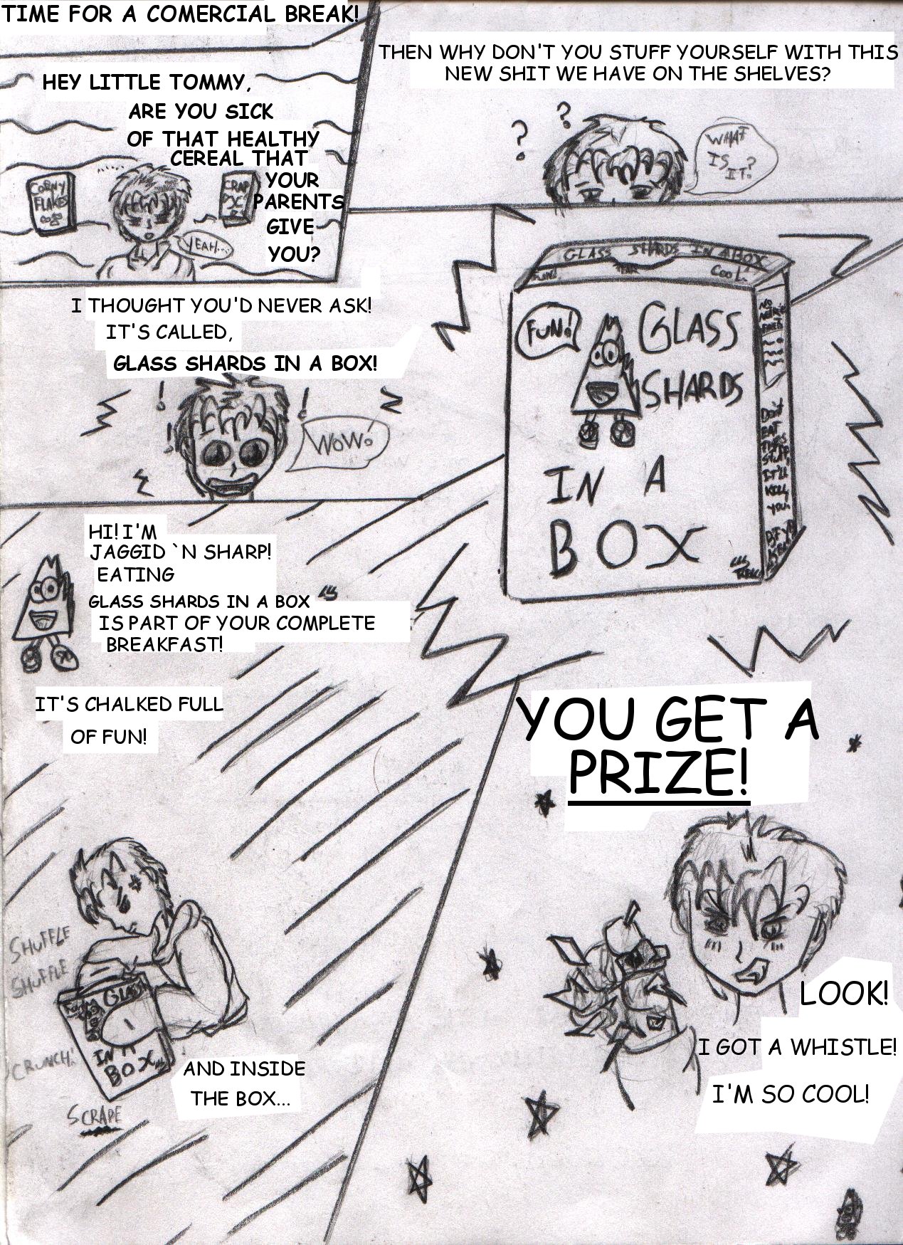 The wording on the side of Glass Shards In A Box is - No Nutritional Facts... ... ... Don't Eat This Stuff, It'll Kill You... BTYB, Kelco...
