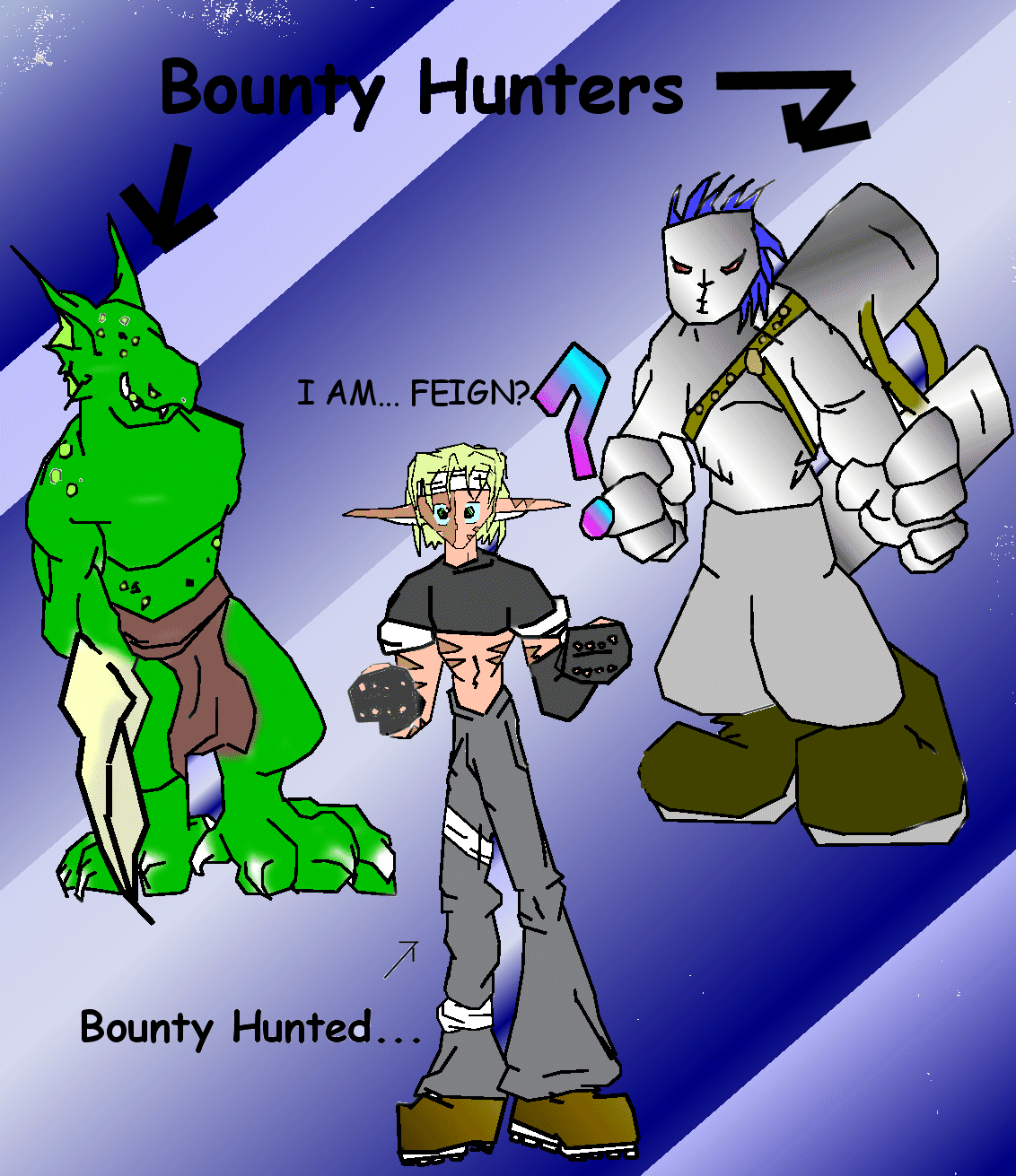 Those two bounty hunters have just made their first appearance in any of the comicbook series. Kinda like a comic cameo... The Lizard thing is named Slit Greedily... And the Guy who shines in the light is Greg Vegnoph...