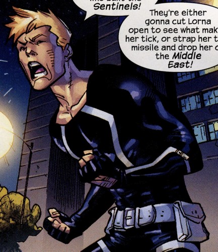 Professor Xavier spoke with both Alex and Scott about attending the Institute. Scott, the younger of the two brothers, accepted the offer, while Alex declined. Alex and Scott have not spoken since. Alex left his girlfriend, Lorna, in order to join the government sponsored New Mutants. Alex's goal was to become more famous than his brother.