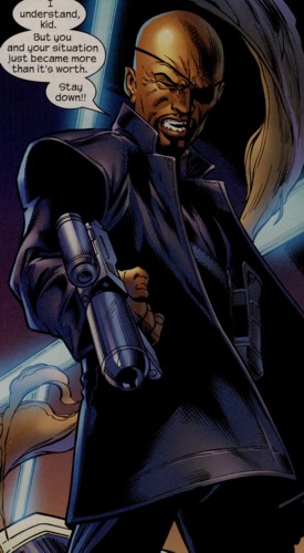 Details of Nick Fury's early life and career are sketchy and contradictory. He has claimed both that he was orphaned as a child, and that his mother is still alive; that he graduated college in India less than a decade ago and that he personally contributed to the end of the Cold War. Regardless, his status as a "war hero" is generally considered unquestionable. He has also said he has been prepared to die since the age of eighteen, but what happened then and how it affected his life remains a mystery.