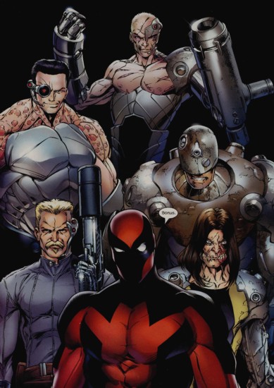 Hired by Mojo Adams, the Reavers are mercenaries that have undergone surgery to become cyborgs for the specific purpose of hunting down mutants on live television. They are led by Deadpool, who had gone through several different surgeries.