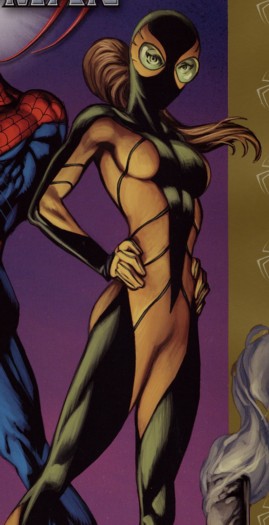 Kitty had a long-standing crush on Spider-Man. They began to date after ending their relationships with their respective ex-partners, Iceman and Mary Jane Watson. The two spent much of their time hunting criminals, effectively making Kitty Spider-Man's crime-fighting partner. Kitty eventually adopted a full masked costume to fight crime with Spider-Man so when seen with Peter Parker, people would be less likely to figure out his secret identity.
