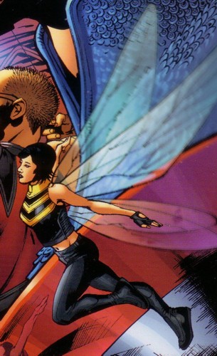 Asian-American mutant Janet Van Dyne grew up on a military base near Dusseldorf, Germany, but later went to college in America. Studying science at NYU, she roomed with fellow "army brat" Betty Ross and dated Hank Pym, an unstable scientific genius who sometimes physically abused her. Claiming the good times made the bad times worth it, Jan stuck by Hank despite his abuse, and eventually married him. Her low self-esteem may have stemmed in part from her secret mutant traits (insect-like properties and the power to reduce her own physical size), which she concealed from everyone but Pym. When she and Hank worked at S.H.I.E.L.D.'s Super-Soldier Research Facility under Bruce Banner (later the monstrous Hulk), Jan allowed Hank to take credit for supposedly creating her powers by scientific means, and Pym made various scientific breakthroughs based on his genetic studies of Jan. The Pyms were later promoted to head the research and development wing of the government's new superhuman strike force, the Ultimates, with Banner as their deputy and Betty Ross as the program's Director of Communications. The Pyms also became two of the program's founding super-operatives as the Wasp and Giant-Man (Hank using a new growth formula), and Jan embraced her new status as a celebrity. Humiliated and injured in battle by a rampaging Hulk and jealous of teammate Captain America, Hank nearly killed Jan during a subsequent domestic fight, engulfing the shrunken Wasp in an army of hostile ants.