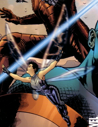 Size Manipulation: In, Shrinking Only. Can shrink with In ability down to 1/2 inch. tall. She retains all her other powers only between this 1/2 inch and 48 inches in height. When she shrinks small wings grow from her back. While small she is +2 CS to fight larger opponents and is -2 CS to be hit by them.