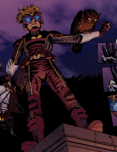 One night when liquor store robbers broke into the orphanage to use it as a refuge, Kipple helped the vigilante Hawk-Owl subdue the criminals. The next day, much to Kipple's surprise and suspicion, he was adopted by millionaire Jack Danner.