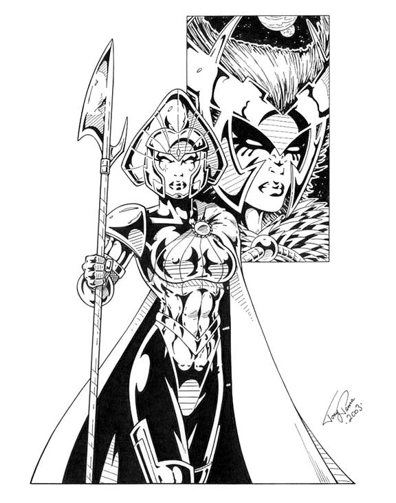 This is an original sketch of the Majestrix of The Shi'ar Empire Lilandra Neramani and her evil sister Deathbird by Tony Perna.