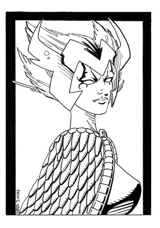 Original Inked Deathbird Sketch Card by Evan Driscoll (a.k.a. Studio-Hades). Evan sometimes has X-Men art or commissions on auction at eBay (for very reasonable prices). His eBay seller I.D. name is studio_haedes - If anyone is interested in seeing other art or pics of the character Deathbird, I have another website dedicated to Rogue, Deathbird and Lilandra. http://groups.msn.com/RogueFanArtGallery