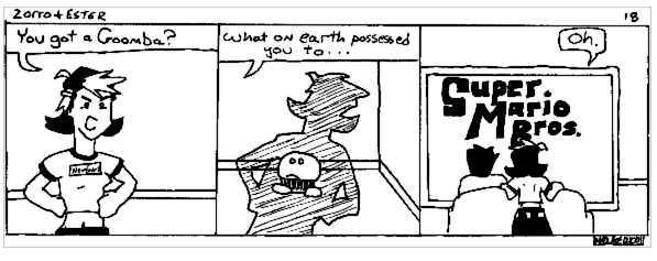 121001 - Well I had my first exam, Weight Training, and it went pretty well. 25 true/false questions, took only about 5 minutes. heh. Umm, what else, oh yeah yesterday I updated a lot of this page, and added a changing banner on the index. I like that, except it took forever to learn how to do. Well, I'm finally getting back to one part comics again after this whole new character fiasco is over. Welcome the Goomba today, for he/she is the third character. Now I guess I will get back to studying. Umm, do I say Umm too much? I dunno. Well my plan for this weekend is to have advertised this website on rpgamer and some other websites. Hopefully that will go well. Watch Butch Cassidy and remember to brush your teeth. The tomato is a universal sign of not enjoying a preformance, plus I like them on a salad.